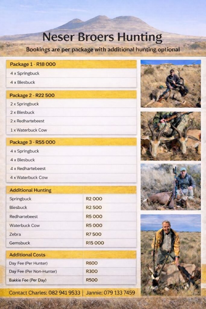 | Day Fee (Per Hunter) | R 600 |